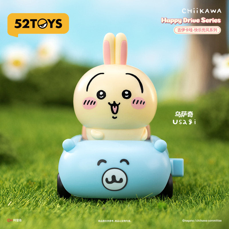 Chiikawa blind box, 52TOYS, Happy Drive Series, wind up toy, Hachiware, Usagi, Momonga, kawaii figure, desk toy, anime collectible, mini car figure