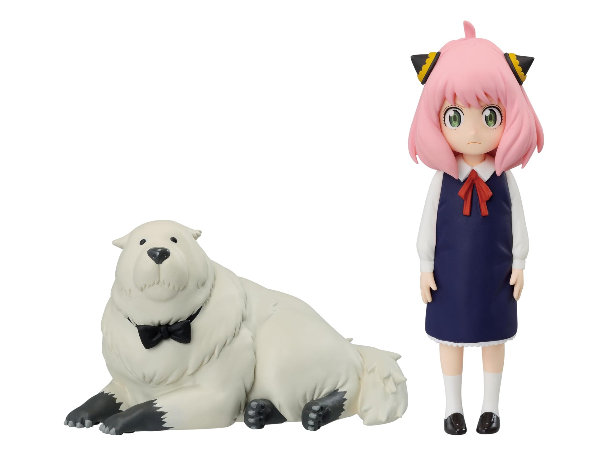 Experience the adorable bond between Anya and Bond with this officially licensed Banpresto Spy x Family Figure Set by Bandai Spirits. Capturing the iconic characters from the hit anime Spy x Family, this PVC collectible features Anya Forger in her school uniform and Bond Forger looking dapper with his signature bowtie, in a relaxed photo-style pose.