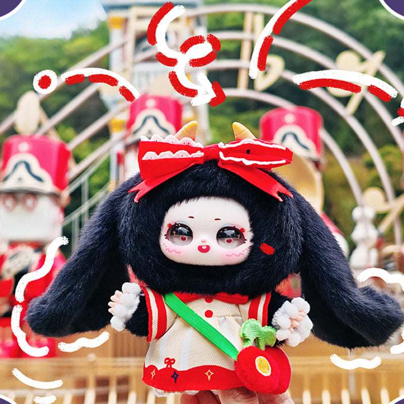 This dreamy blind box collection features adorable bunny-inspired characters dressed in whimsical paradise costumes, combining soft plush textures with vinyl-style details for a premium designer-toy look.