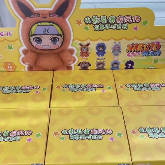 This officially licensed blind box features your favorite characters—Naruto, Sasuke, Sakura, Kakashi, Gaara, Hinata, and one Secret Itachi—all dressed in irresistibly fluffy animal onesies.